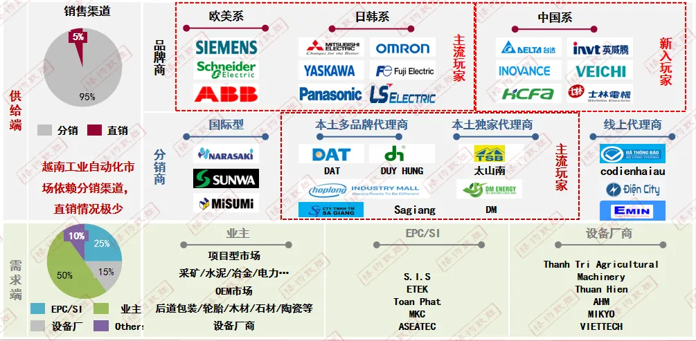 越南自动化销售多依赖代理渠道,且以越南本土线下代理商为主,越南本土玩家市场需求相对较小,多为海外投资厂商需求,且多为后市场需求。