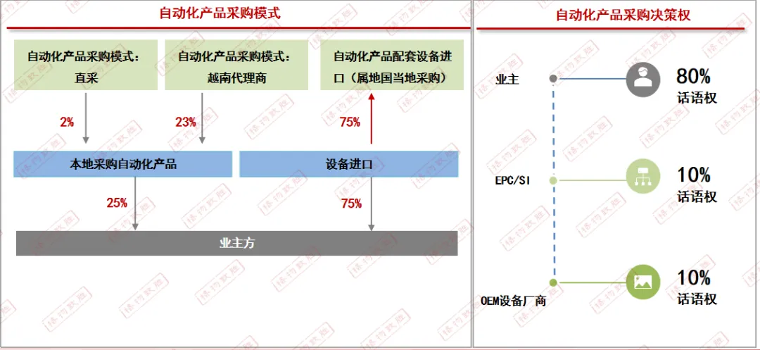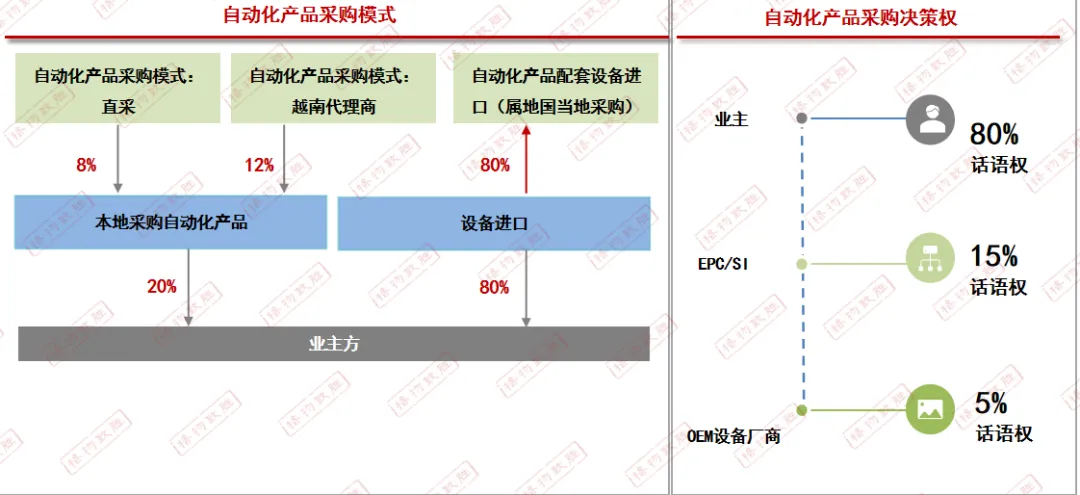 越南自动化采购方多为业主方和EPC/SI,且多为备品备件,设备升级替换等场景,越南OEM设备自产能力较低。