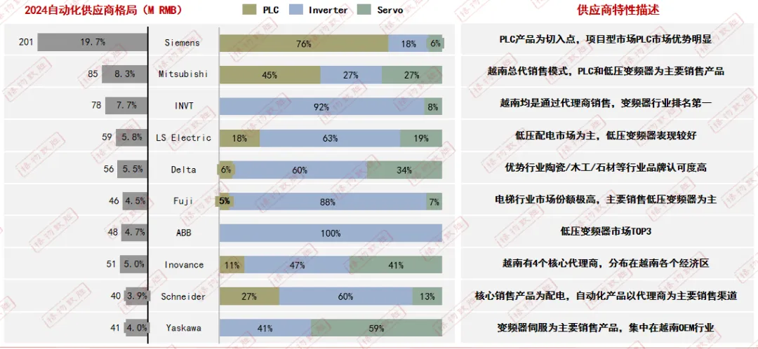 越南本土自动化品牌极少,以中高端外资品牌为主,中国品牌进入市场较晚,但快速增长。