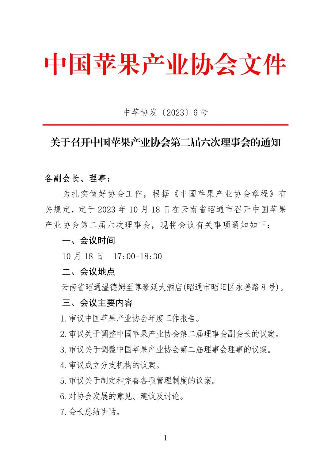 协会通知丨关于召开中国苹果产业协会第二届六次理事会的通知