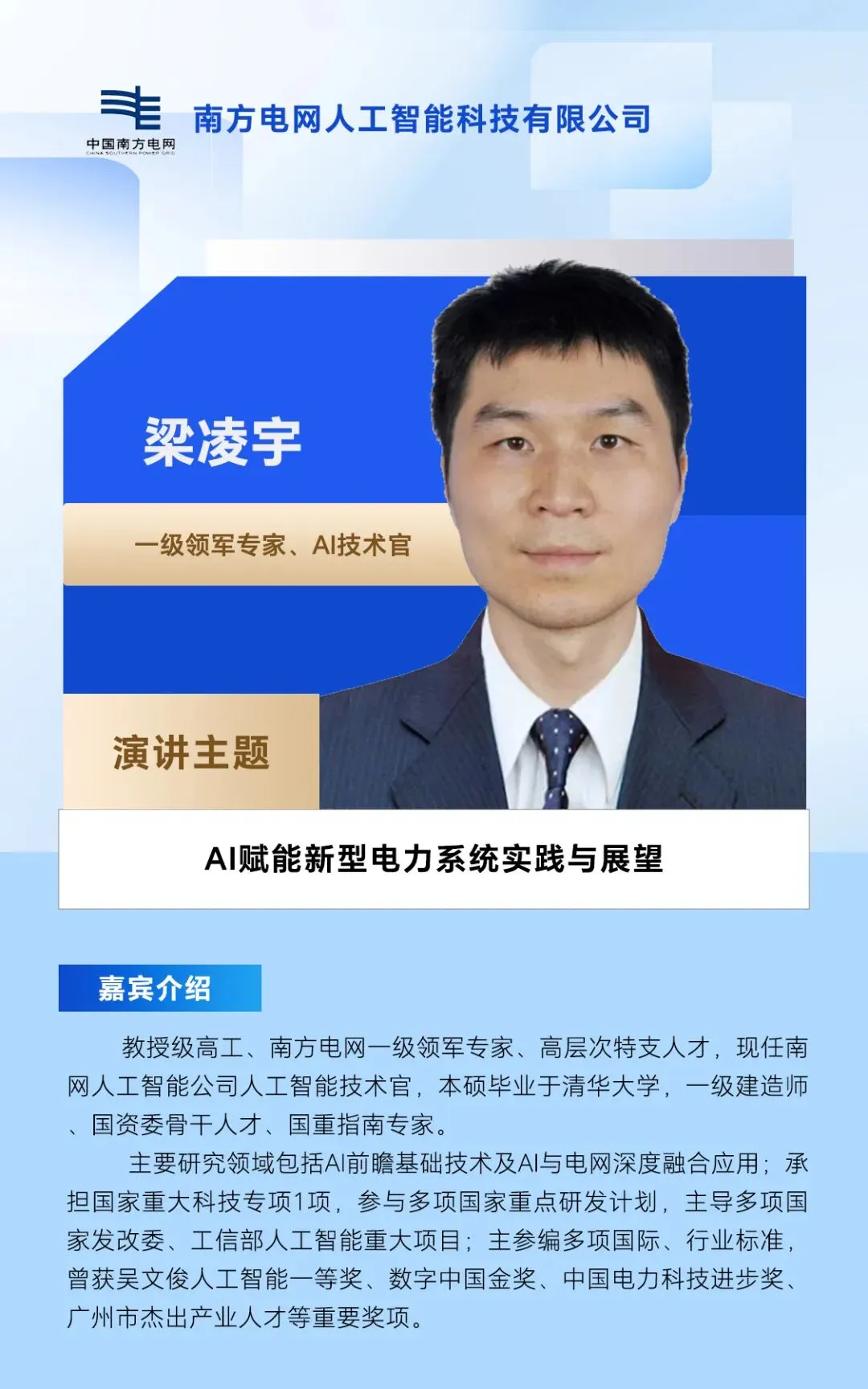 6月23-25日,2026中国电力企业数智化大会将在杭州启幕,大会特邀南方电网人工智能科技有限公司一级领军专家、AI技术官梁凌宇先生发表演讲《AI赋能新型电力系统实践与展望》。