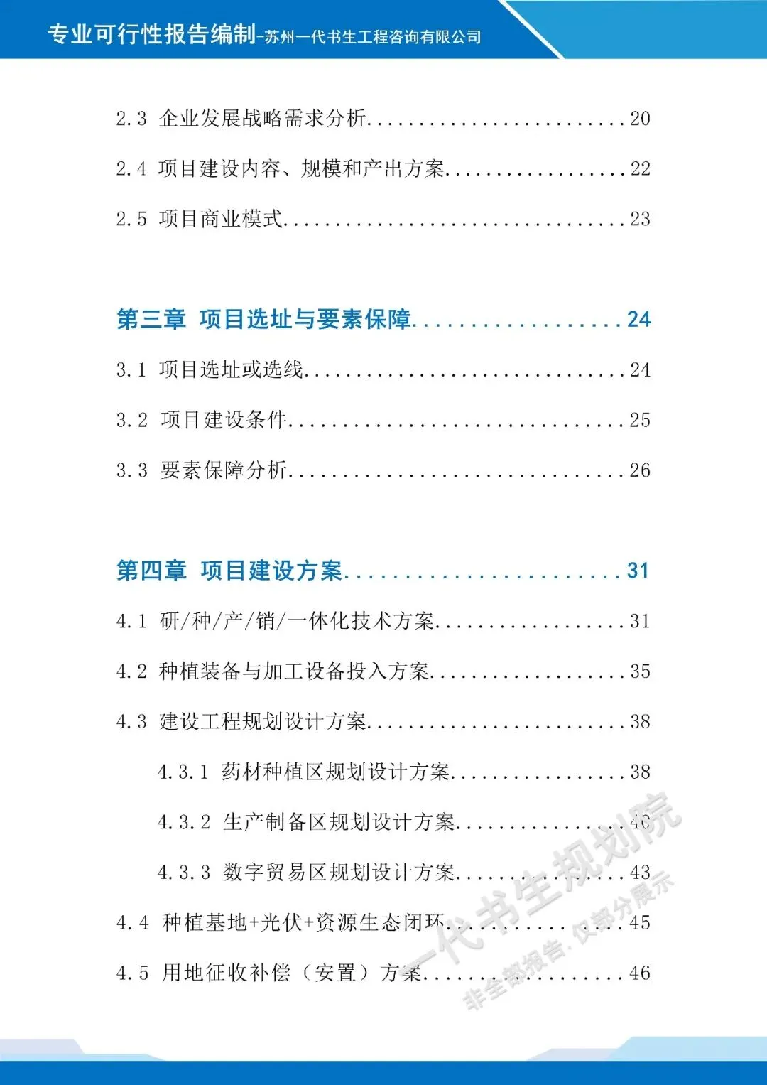 以下是《中药草育苗育种项目可行性研究报告》的案例展示,该项目可行性报告编制公司为苏州一代书生工程咨询有限公司。项目可行性研究报告编制、项目计划书编写,请联系:17312436919。《中药草育苗育种项目可行性研究报告》是由苏州一代书生工程咨询有限公司出具。苏州一代书生工程咨询有限公司,是集市场评估、产业策划与规划设计于一体,可为项目提供建设前期评估、落地规划设计,出具成果有:《行业市场调研分析报告》、《项目建议书(项目计划书)》、《项目可行性研究报告》、《项目初步设计方案》、《项目概念规划设计方案》、《项目建设总体规划设计方案》、《地区/片区/项目总体产业发展规划方案》等。行业趋势方面,随着大健康产业的快速发展,中药草在医药、保健、美容等领域的应用需求持续攀升,市场对高品质中药草种苗的需求量逐年增长。同时,消费者健康意识的提升推动中药草产品市场规模不断扩大,育苗育种作为中药草产业链的源头环节,其技术创新和标准化生产成为行业发展的关键方向,具备广阔的市场前景和发展潜力。行业风险主要集中在三个方面。一是技术风险,中药草育苗育种对技术要求较高,若在品种改良、病虫害防治等关键技术环节出现突破不足,可能导致种苗质量不达标,影响后续种植和市场竞争力。二是市场风险,中药草市场价格受供需关系、自然灾害等因素影响较大,价格波动可能对项目的经济效益产生不确定性影响。三是自然风险,气候变化、极端天气等自然因素可能影响种苗的生长环境,导致育苗成活率下降,增加项目运营成本。可行性报告编制单位苏州一代书生工程咨询有限公司拥有专业的市场分析团队和丰富的项目规划经验,能够结合中药草育苗育种行业的特点,对项目的市场需求、技术可行性、经济效益等进行全面深入的分析。公司凭借多年在市场评估和产业策划领域的积累,可为项目提供科学合理的规划方案和专业的咨询服务,助力项目顺利推进和实施。产业规划咨询、概念规划设计