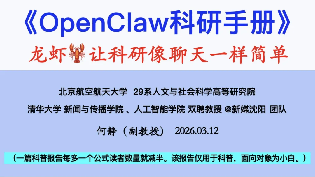 《OpenClaw科研手册》聚焦这款高能动性智能科研辅助工具,围绕其核心价值、架构、实操应用及发展趋势展开全面科普,旨在解决传统科研的诸多痛点,让科研工作更高效、简单。