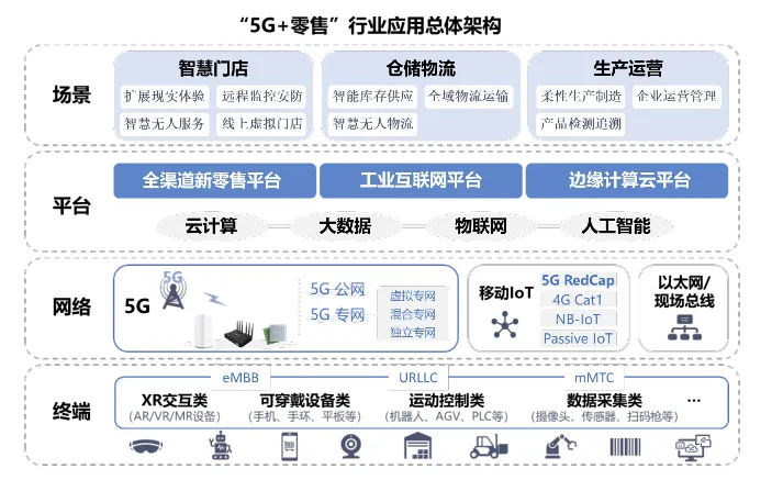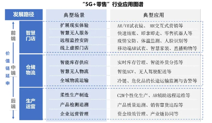 《白皮书》立足零售行业发展趋势,以5G 网络“超高速率、超低延时、超大连接”为切入点,呈现“5G+零售行业”的叠加倍增效应,提炼了“5G+零售”应用总体架构,提出了“5G+零售”行业应用图谱,形成了“5G+零售”十大典型应用场景,呈现了5G技术赋能零售行业的应用实践。