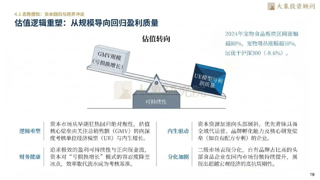 资本市场从关注GMV转向考核单位经济模型(UE)与利润质量,资源加速向具备核心壁垒的头部企业倾斜。竞争格局由“哑铃型”向头部集中转化,头部宠企通过纵向一体化整合出清非合规品牌。领先企业通过全球产能配置对冲风险,利用智能化工厂AI配方优化实现断崖式降本,构建起全球供应链护盾。在品牌资产方面,企业摒弃传统铺量,通过建立“类目-功能-场景”搜索矩阵精准卡位,实现从产品输出到心智主权的深度绑定。这种体系化防御能力与本土制造溢价结合,成为了保障经营稳定性的底座。