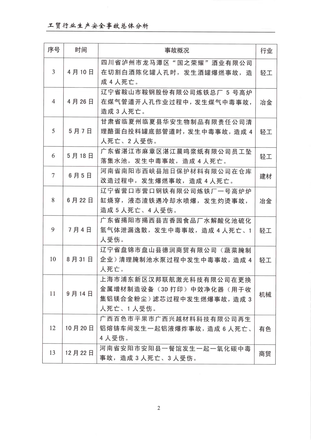 2023年全国工贸行业生产安全事故分析报告