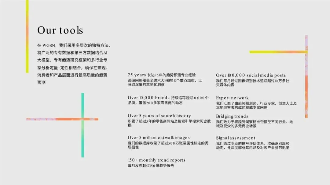我们的研究整合了广泛的独家数据源、全球专家网络以及定制化的案头研究,涵盖零售数据、可持续性与企业社会责任情报、白皮书与行业报告以及人口普查信息等。通过对这些信息进行整合提炼,我们识别出关键的未来消费者行为趋势,随后运用一系列评估标准进行分析,并最终将洞察聚焦收窄,转化为针对特定行业的洞察以及为客户量身打造的建议。