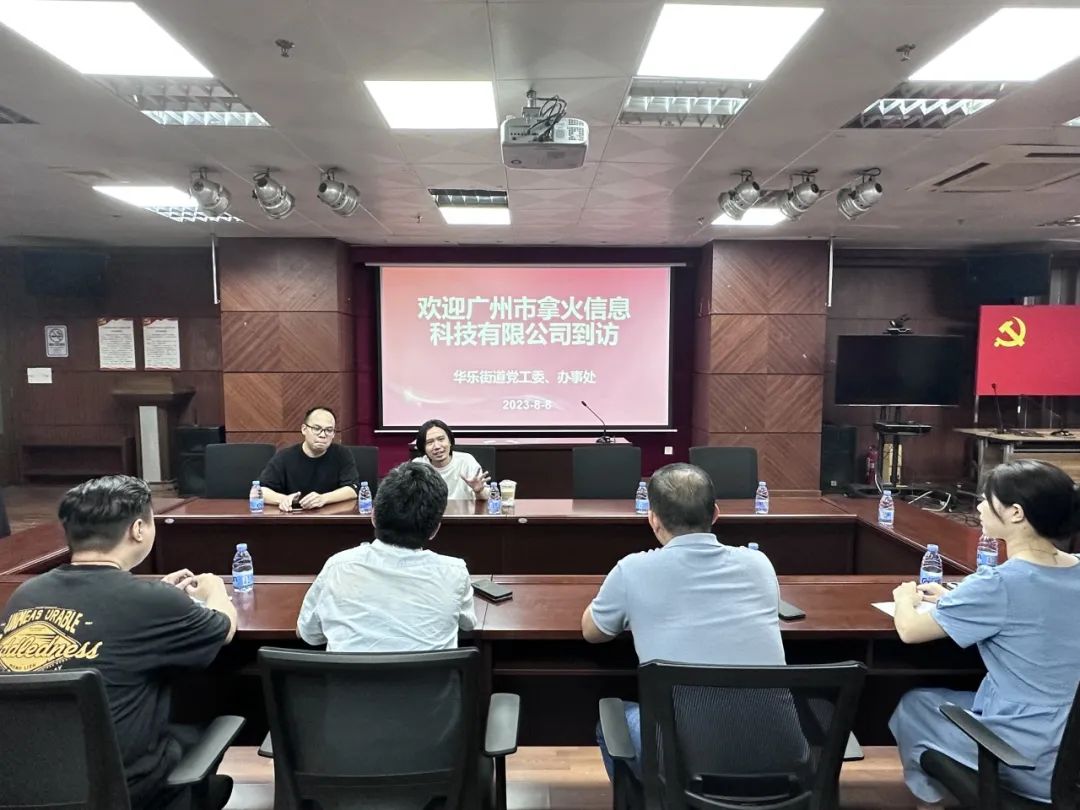 8月8日下午,商会副会长单位广州市拿火信息科技有限公司行政总裁陆子天及特别行政助理方子力到访办事处,街道党工委书记谭建光、街道办事处主任胡颖珊以及社发办主任林劲松进行接待。陆总向街道对企业一如既往的支持表示感谢,并介绍了拿火当前的研发项目以及企业未来发展方向。此外,双方就“智能吉他教育进校园”实施方式及试点单位计划情况进行了进一步研讨,将持续推进相应工作开展,商会也将继续跟进相关事宜,促进合作共赢。