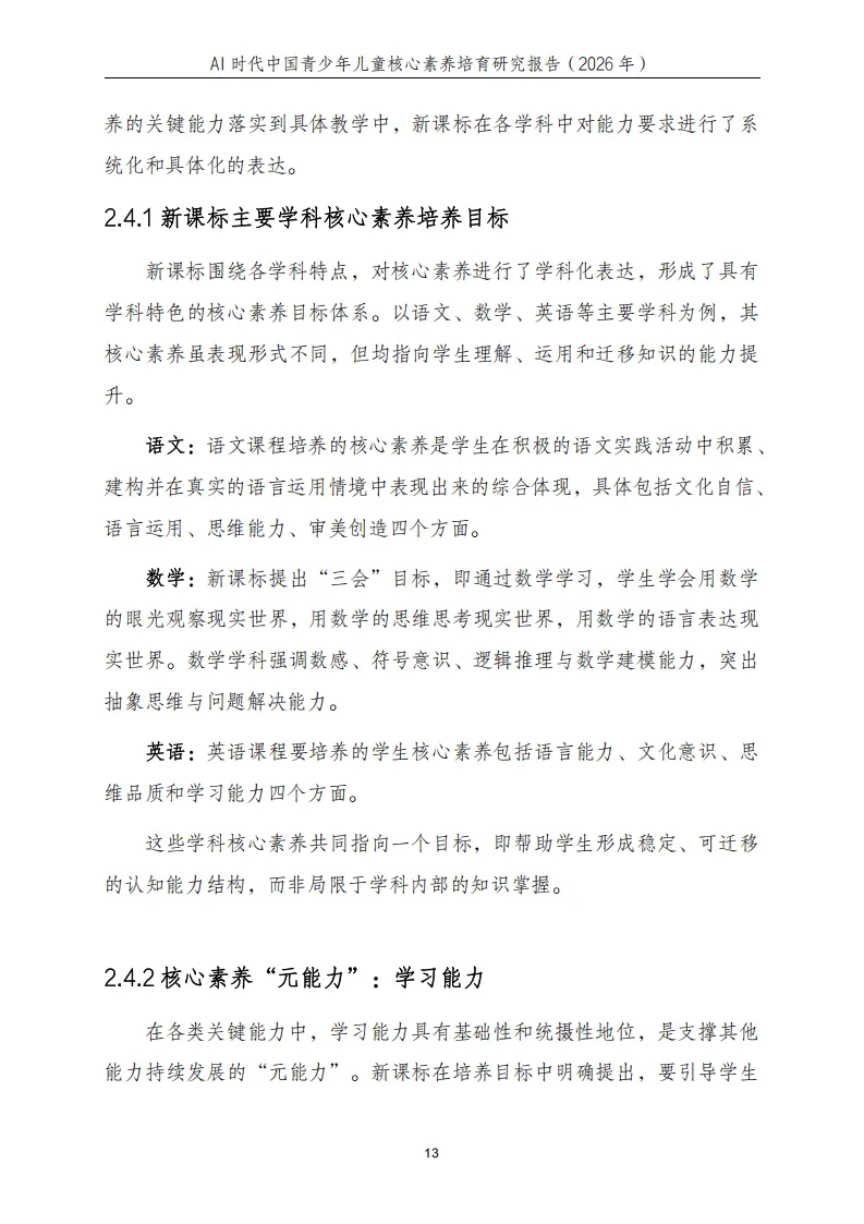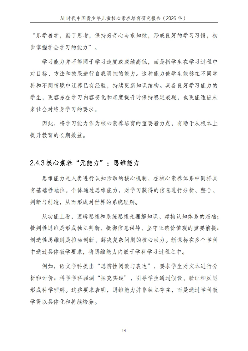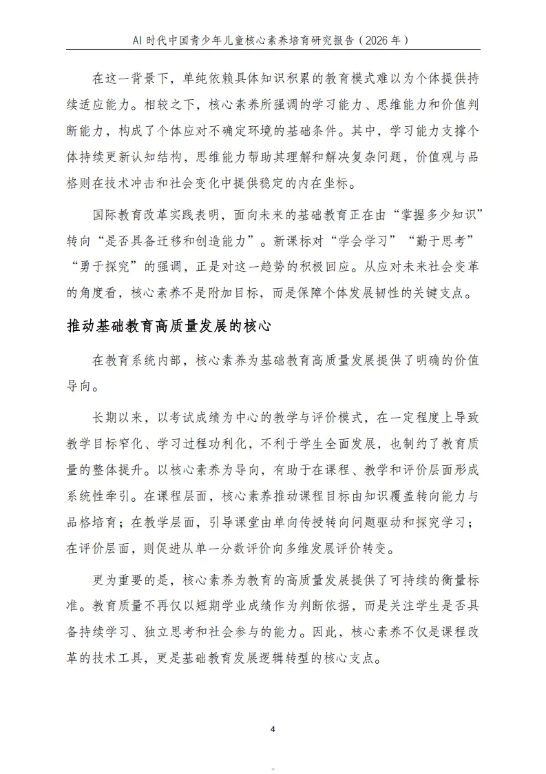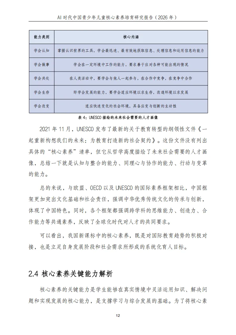 【全球行业报告库】AI时代中国青少年儿童核心素养培育研究 (附下载)