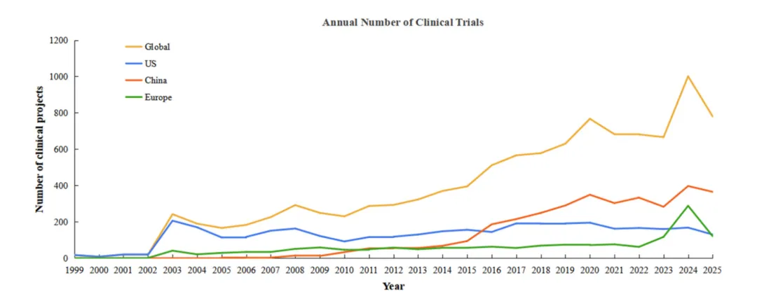 对截至 2025 年 10 月的全球细胞治疗临床试验、上市产品及区域监管趋势展开全面分析,勾勒出全球细胞治疗领域的发展全貌与前沿方向,为该领域的临床转化和产业发展提供了重要参考。