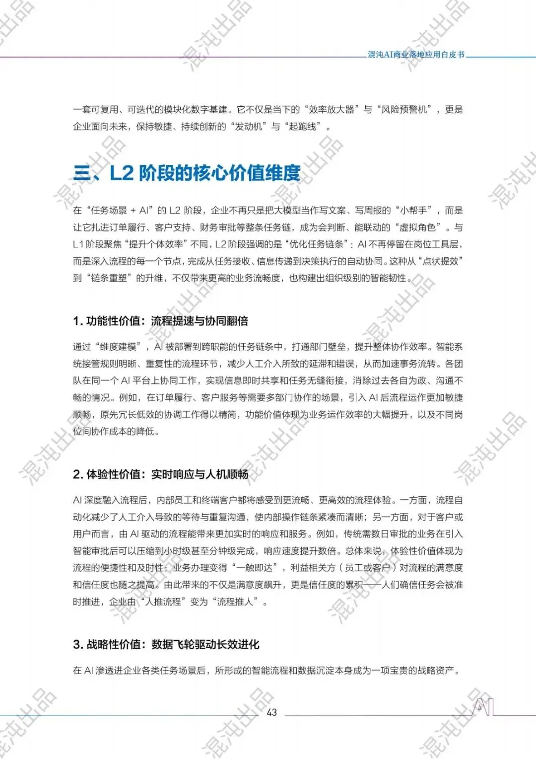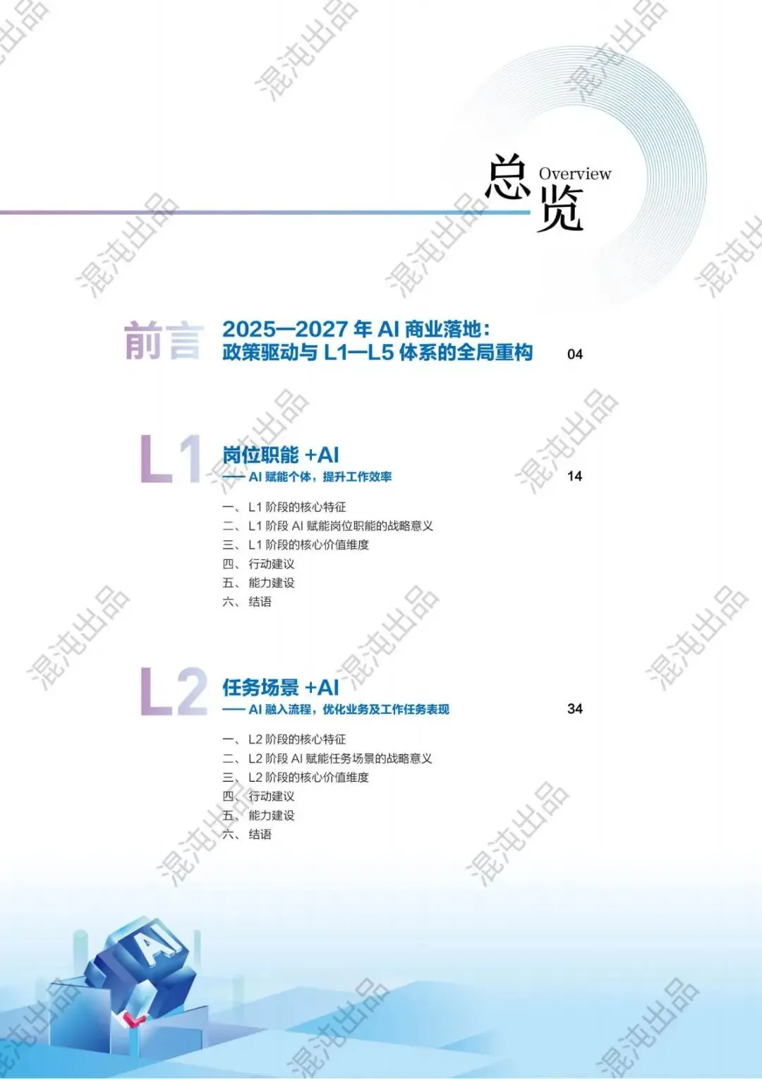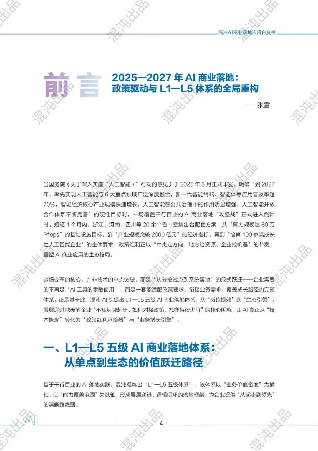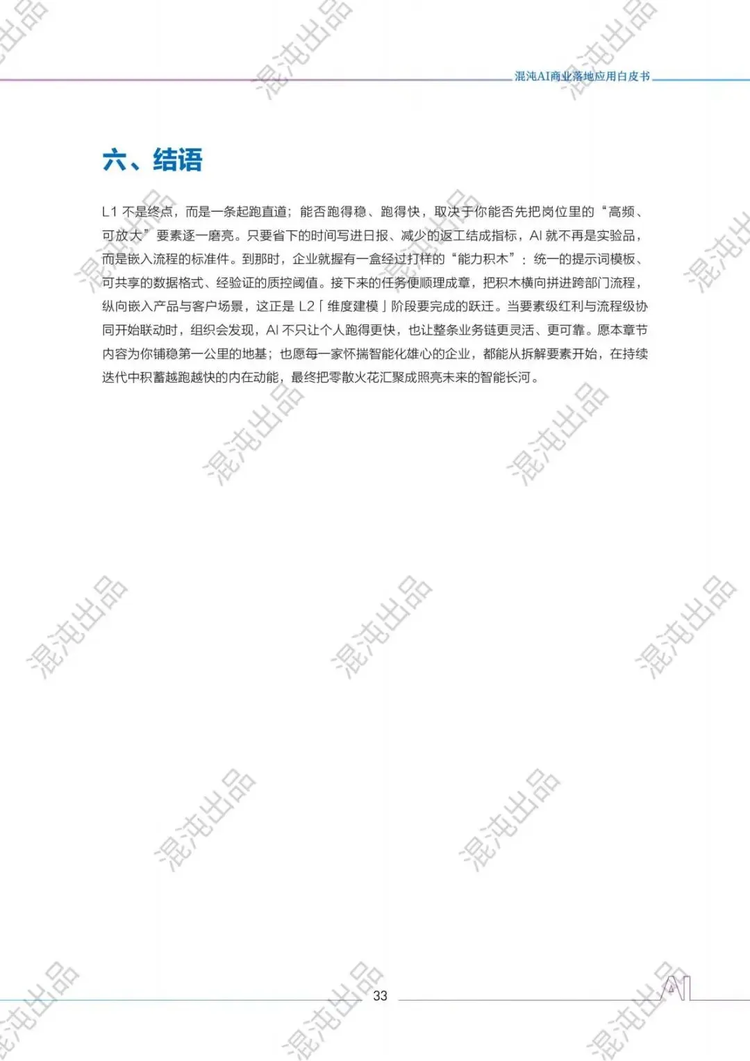 AI不再是技术概念,而是政策红利承接器、业务增长引擎。混沌L1-L5五级体系,把复杂的AI落地拆成清晰的阶梯:从岗位提效到流程协同,从产品创新到原生重构,最终到生态引领,每一步都有方法、有指标、有案例、有政策支撑。