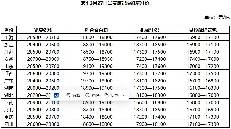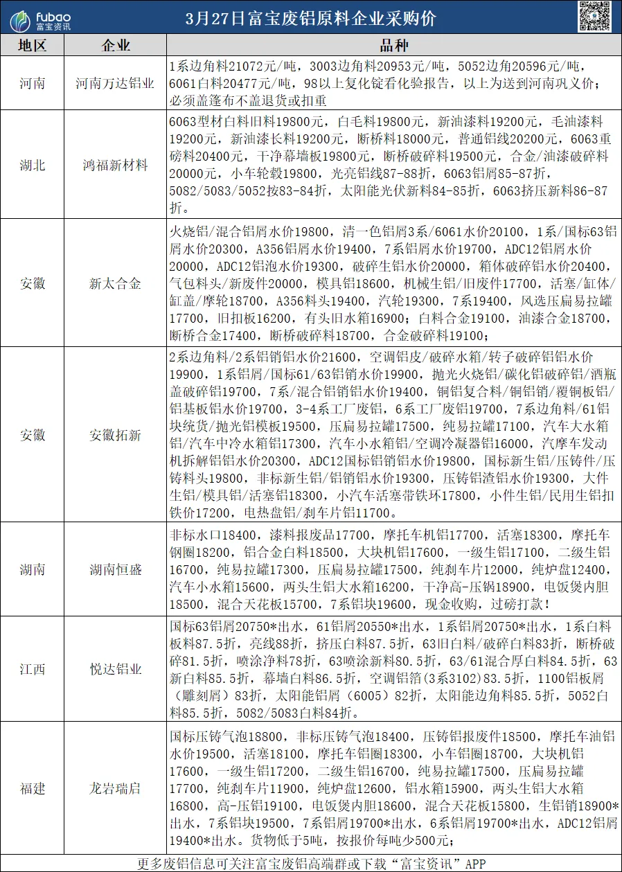 今各地区废铝价格上涨100-200元,华东地区光亮铝线20300-21100元/吨,铝合金料18400-19900元/吨;市场流通货源偏紧,铝棒订单回暖,企业适量补货,合金料略显畅销,尤其倾向于带票货源。短期铝价回暖,料废铝价易涨难跌。