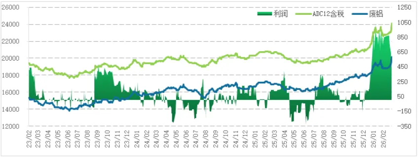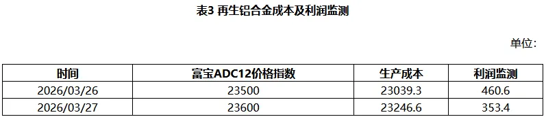 再生铝合金锭生产成本由原料费用+设备折旧费用+人工费+燃气费+铝灰处理费+炉耗等综合测算;废铝原料按破碎生铝(出水95%)进行计算;最新国内再生铝合金平均加工炉耗设定为1.5%(原值2%);近日因地区税返政策波动,成本端税率有所调整。