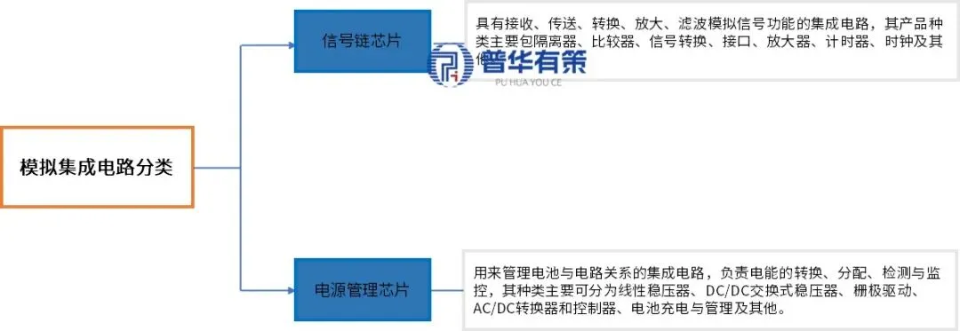 模拟集成电路按在电路中的功能作用主要可分为信号链集成电路和电源管理集成电路两大类。