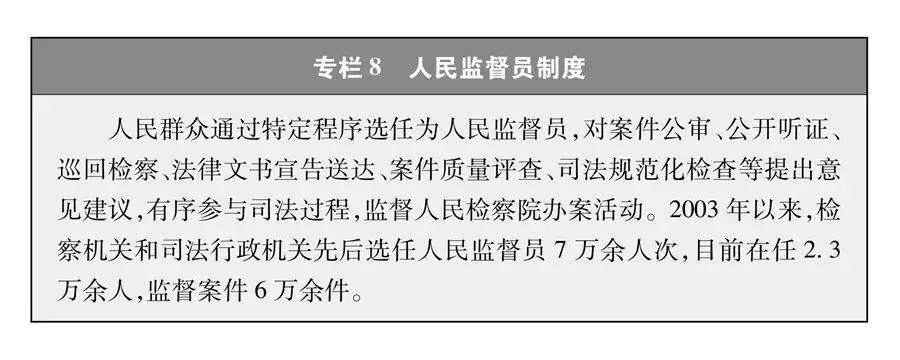社会组织民主管理。社会团体、基金会、社会服务机构等社会组织,普遍制定章程,加强组织成员管理,自主开展活动,集中组织成员或服务对象的意见建议,以组织化的方式积极参与社会公共事务治理,在行业自律、社会服务、慈善事业等领域发挥民主管理作用。截至2021年11月,各级民政部门共登记社会组织超过90万家,其中全国性社会组织2284家。形式多样的社会组织成为人民民主管理的重要领域。 全面有效的民主监督,保证人民的民主权利不因选举结束而中断,保证权力运用得到有效制约。在中国,解决权力滥用、以权谋私的问题,不能靠所谓的政党轮替和三权分立,要靠科学有效的民主监督。中国结合本国实际,探索构建起一套有机贯通、相互协调的监督体系,形成了配置科学、权责协同、运行高效的监督网,对权力的监督逐步延伸到每个领域、每个角落。 人大监督。人民代表大会充分发挥作用,对宪法法律的实施、重大决策部署的落实等开展监督。各级人大及其常委会加强对“一府一委两院”执法、监察、司法工作的监督,确保法律法规得到有效实施,确保行政权、监察权、审判权、检察权得到正确行使。人民通过人大代表座谈会、基层群众座谈会、问卷调查、网络调研等“开门监督”的形式,积极参与人大监督工作。 民主监督。中国共产党支持民主党派和无党派人士在坚持四项基本原则基础上,在政治协商、调研考察,参与党和国家有关重大方针政策、决策部署执行和实施情况的监督检查,受党委委托就有关重大问题进行专项监督等工作中,通过提出意见、批评、建议等方式,进行民主监督。参加人民政协的各党派团体和各族各界人士在政协组织的各种活动中,依据政协章程,重点就党和国家重大方针政策和重要决策部署的贯彻落实情况,以提出意见、批评、建议的方式进行协商式监督,协助党和政府解决问题、改进工作、增进团结、凝心聚力。 行政监督。国家行政机关按照法定的权限、程序和方式,对行政机关自身的组织行为、行政行为进行监督,包括各行政机关自上而下、自下而上以及相互之间进行的监督。 监察监督。监察机关依法履行监察监督职责,对公职人员政治品行、行使公权力和道德操守情况进行监督检查,督促有关机关、单位加强对所属公职人员的教育、管理、监督。 司法监督。审判机关和检察机关依照法定职权和程序对人民授权的国家公权力进行监督。司法监督是党和国家监督体系中强制性程度最高的一种监督机制,是党和国家利用监督手段、维护公权力正确行使的“最后一道防线”。 审计监督。审计机关依法对本级各部门和下级政府预算的执行情况和决算以及其他财政收支情况,进行审计监督。 财会监督。财政部门根据法律授权,对财政、财务、会计管理的法律、行政法规、部门规章等执行情况进行监督。 统计监督。统计部门及负有统计调查职责的相关机关,对所有行使统计权力、负有统计义务的组织和人员进行监督,防范和惩治统计造假、弄虚作假,确保统计资料真实准确、完整及时,为经济社会发展提供扎实的统计保障。 群众监督。公民、法人或者其他组织通过各种方式,对各级国家机关及其组成人员履职情况进行监督,既可以依法申请行政复议、提起行政诉讼,也有权向监察机关检举控告监察对象不依法履职,违反秉公用权、廉洁从政从业以及道德操守等规定,涉嫌职务违法、职务犯罪行为。