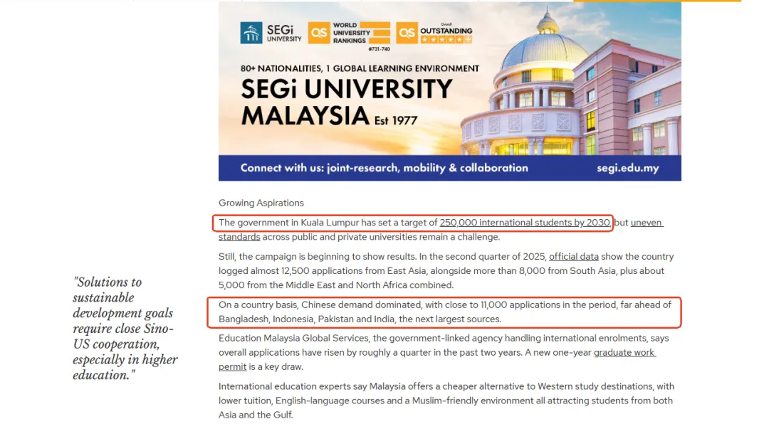 据马来西亚高等教育部(MOHE)统计,2026年中国在读学生总量预计将突破6万人,且目标到2030年吸引约25万名国际学生。