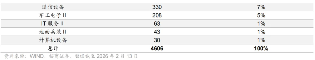 产业链上布局企业方面,以 wind 航空航天产业上市公司口径统计,截至 2026年 2 月 13 日,航空航天产业链共有上市公司 30 家,总市值达 4606 亿元。
