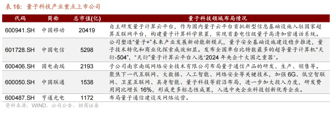 参考 wind 量子技术指数成分股,依据公司市值,梳理出量子科技产业重点上市公司如下:
