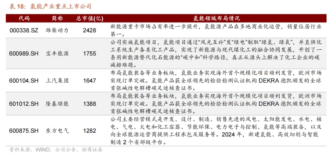 参考 wind 氢能指数成分股,依据公司市值,梳理出氢能产业重点上市公司如下:
