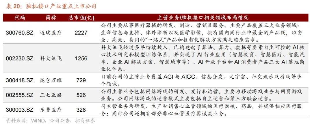 参考 wind 脑机接口指数成分股,依据公司市值,梳理出氢能产业重点上市公司如下: