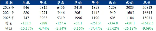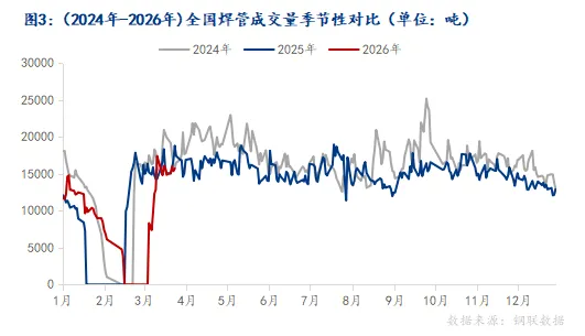 表3:(2023-2025年)焊管日均成交量各区域对比(单位:吨)