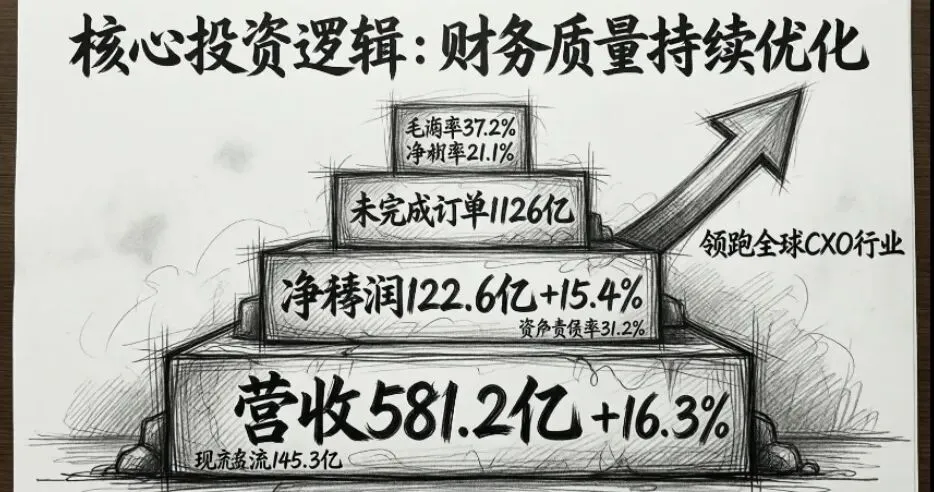 业绩增长韧性:2025年实现营业收入581.2亿元,同比增长16.3%;归母净利润122.6亿元,同比增长15.4%;扣非归母净利润115.8亿元,同比增长17.2%,增速持续领跑全球CXO行业;