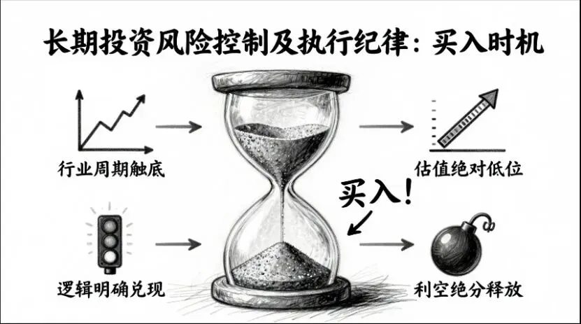 选择行业周期底部、估值处于历史低位、短期利空充分释放、核心基本面稳固的时点分批买入,核心参考信号: