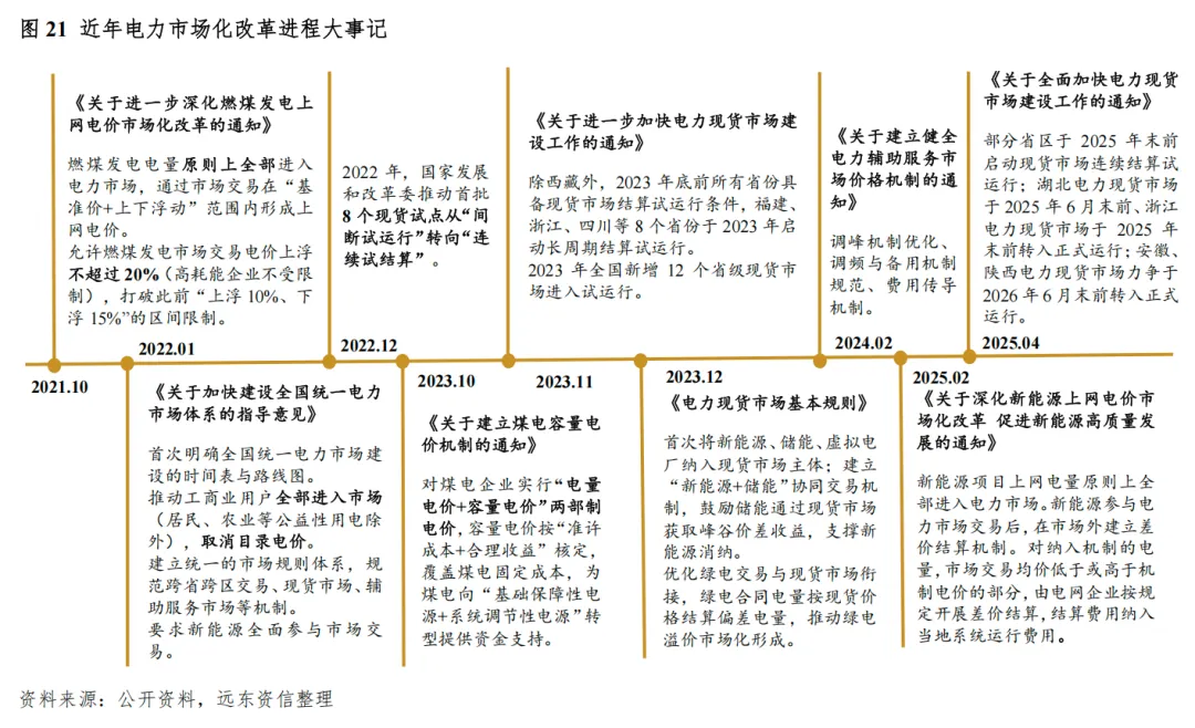 另一方面是深度挖掘系统内容量资源配置潜力,提升其经济性与市场参与度,满足风光机组大规模并网所需的调峰/调频容量要求。当前,电力系统内的容量资源主要包括煤电、天然气发电、抽水蓄能、新型储能等。其中,以新型储能设备发展最为迅猛。根据国家统计局数据,截至2025年末,中国已建成投运新型储能装机规模达到1.36亿千瓦/3.51亿千瓦时,较2024年末增长84%,与“十三五”末相比增长超40倍,平均储能时长2.58小时,相较于2024年末增加0.30小时。为按照顶峰能力统一原则补偿机组可靠容量,公平反映不同机组对电力系统顶峰贡献,国家发展改革委与国家能源局于2026年1月发布《关于完善发电侧容量电价机制的通知》(发改价格[2026]114号),要求分类完善煤电及天然气发电、抽水蓄能电站容量电价机制,建立电网侧独立新型储能容量电价机制,有序建立发电侧可靠容量补偿机制。我们认为,这一政策旨在建立全国统一的、涵盖各类容量资源的容量市场与电价规则,新型储能装置可以参照其他电源的容量电价机制,获得部分可预测的固定成本补偿,进而摆脱完全依赖峰谷电能量差价获取收益的现状,这将明显提升全市场投资人,特别是民间投资人,参与新型电力系统建设的积极性,未来新型储能装置容量料将维持高速增长动能。