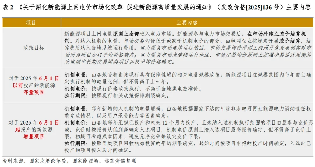 对于新能源机组,2025年是其市场化改革的关键之年。2025年2月,国家发展改革委、国家能源局联合发布《关于深化新能源上网电价市场化改革 促进新能源高质量发展的通知》(发改价格〔2025〕136 号),拉开了新能源电量由保障性收购向全面入市交易的序幕,2026年新能源电力价格将体现通知政策的影响。为保障平稳过渡,通知以2025年6月1日投产为界限划分新老项目,适用不同的政策标准,此后各地陆续出台适用于当地的衔接政策。就2025年6月1日以前投产的新能源存量项目,其具有保障性质的相关电量规模与电价政策以机制电量/电价形式延续,但执行机制的电量比例不得高于上一年;就2025年6月1日起投产的新能源增量项目,其每年新增纳入机制的电量规模,由各地根据国家下达的年度非水电可再生能源电力消纳责任权重完成情况,以及用户承受能力等因素确定。机制电价则由各地每年组织已投产和未来12个月内投产、且未纳入过机制执行范围的项目自愿参与竞价形成。整体来看,存量项目沿袭现行政策确定机制电量与机制电价,运营承接性好,收益确定性强;增量项目即使纳入机制部分,电量与电价的保障程度均大幅低于存量项目,存量、增量项目政策优惠力度差异明显是2025年5月我国新能源装机出现历史性抢装的根本原因。