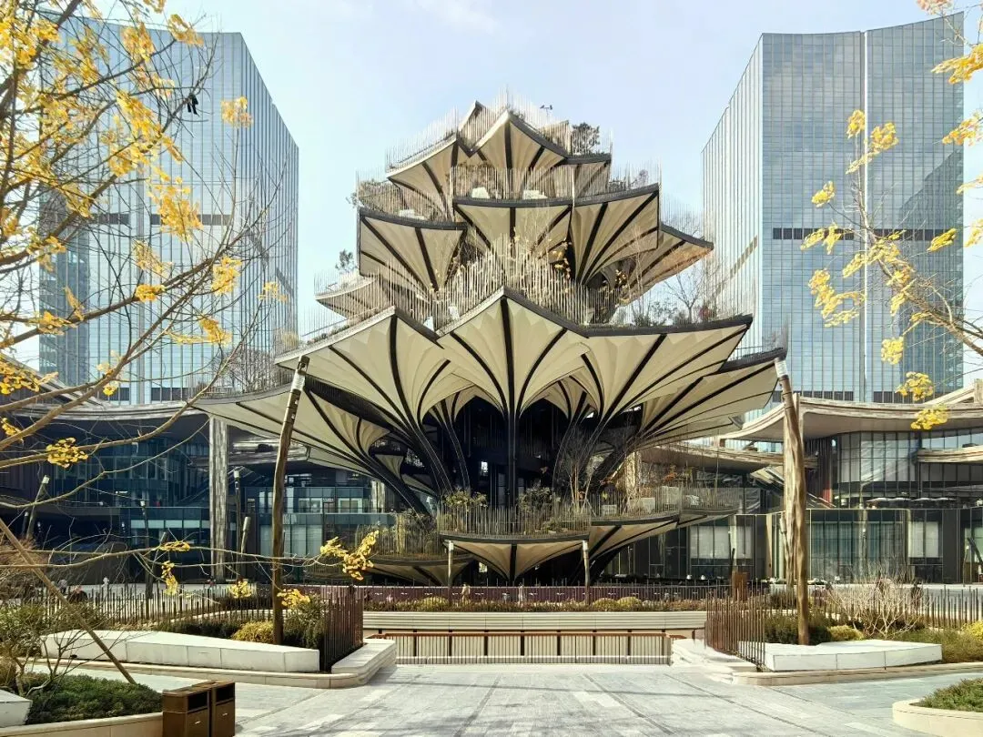 生命之树的灵感,来自西安古观音禅寺内的千年银杏古树。按照常规逻辑,生命之树应致敬它的原型,即普罗大众至古观音禅寺必打卡的银杏古树,成为西安市内新的人气打卡地标。