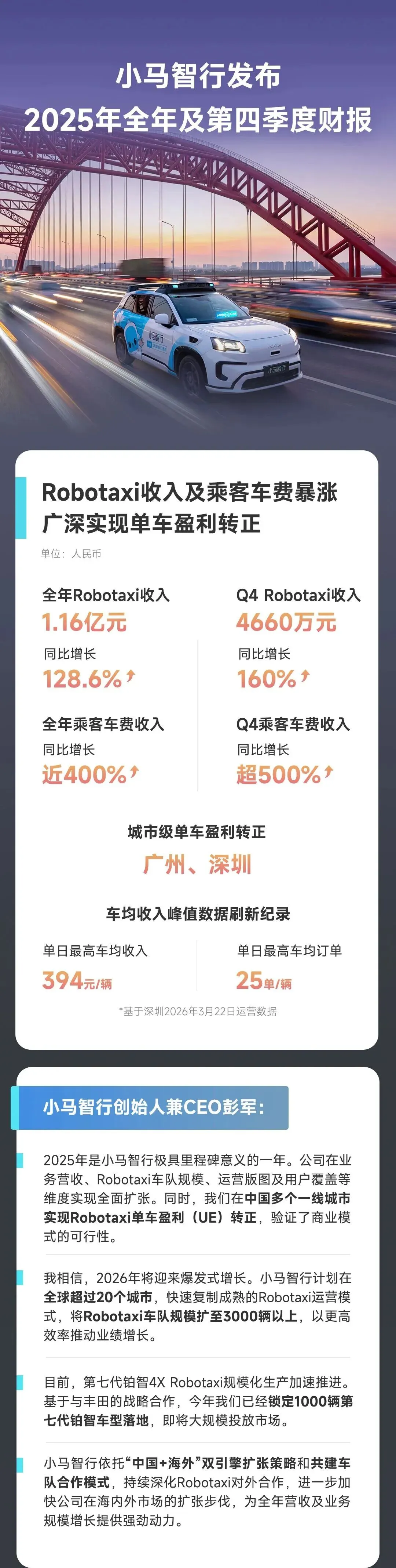 小马智行2025全年及Q4财报:Robotaxi收入翻番,广深单车盈利模式复制,今年海内外超20城落地