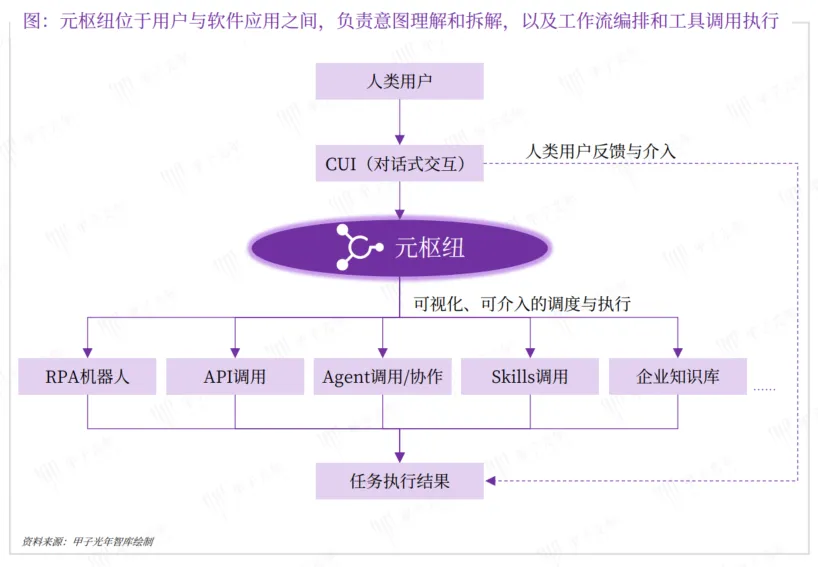 白皮书提出了一个全新概念:“元枢纽”——位于人类意图与企业异构系统之间的智能编排与执行系统。
