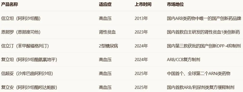 产品矩阵完善:已构建覆盖高血压、心衰、肾性贫血、糖尿病等慢病领域的创新产品梯队