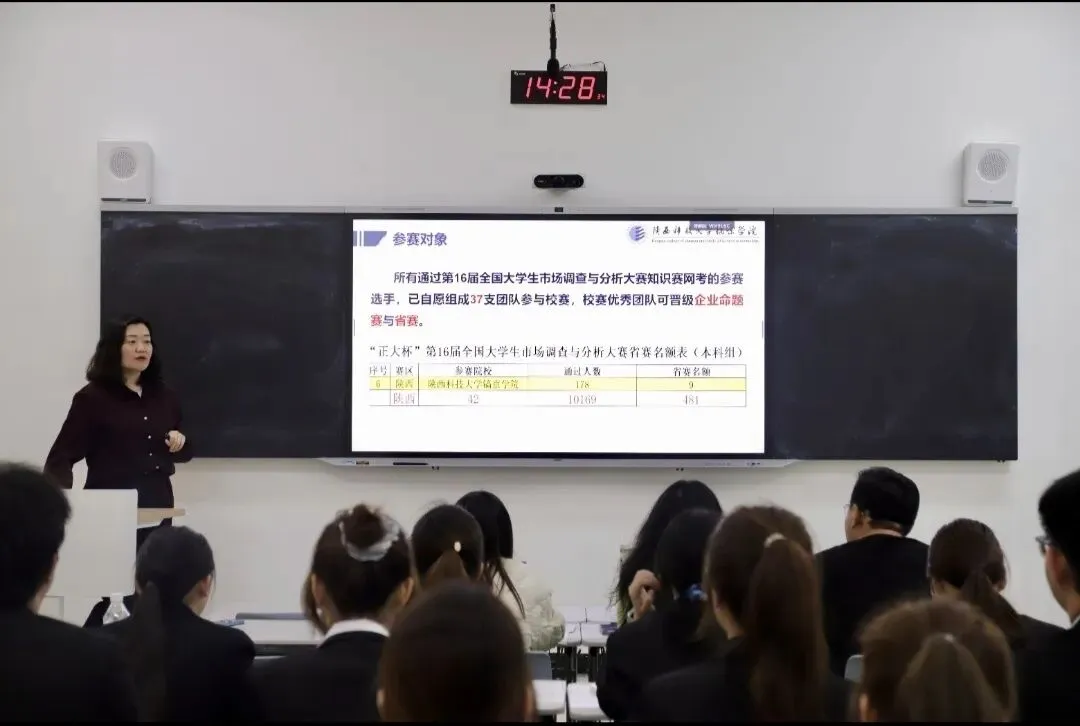 为进一步提升我校学生的市场调研与数据分析能力,搭建理论知识与实践应用深度融合的优质平台,激发学子的创新思维与团队协作意识,3月25日下午2点30分,第十六届“正大杯”市场调查与分析大赛陕西科技大学镐京学院校级选拔赛在教学楼314和316教室正式拉开帷幕。本次校赛聚焦市场调研核心素养,既为广大学子提供了展现专业能力、交流调研成果的舞台,也为选拔优秀队伍冲击省级赛事奠定了坚实基础。
