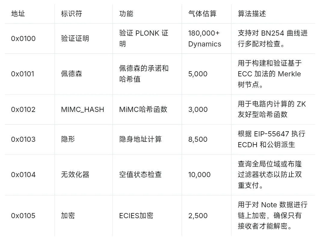 - 任何合约或外部账户(EOA)均可调用。这使得开发者能够利用这些低成本的底层机制构建自定义隐私应用,例如隐私投票或链上混币器。