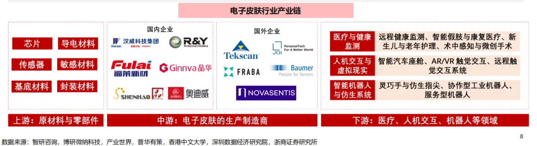 电子皮肤行业产业链上主要包括: