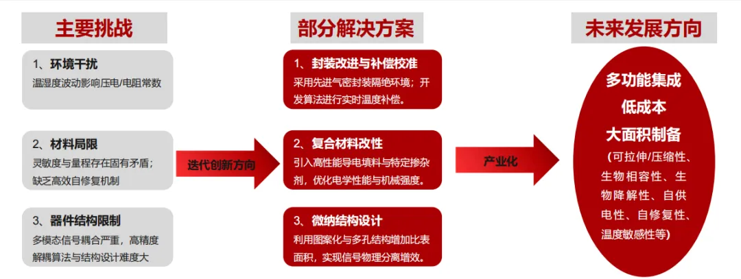 当前主要挑战:外界环境、材料性质、器件结构等都会对电子皮肤的灵敏度、稳定性、检测范围等性能产生影响。