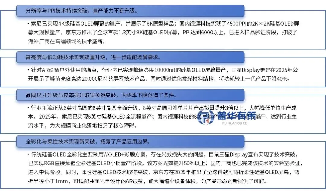 技术层面,全球硅基OLED行业正处于快速迭代期,2024-2025年,多个核心技术领域实现了突破性进展,为行业规模化商业化奠定了基础。