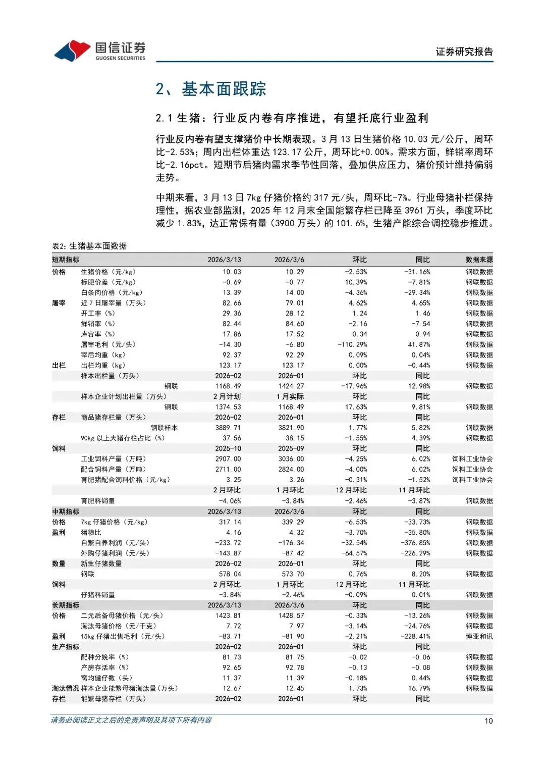 农林牧渔行业农产品研究跟踪系列报告(198):猪价下跌有望加速去化,全面看多农业板块-260315-国信证券-27页