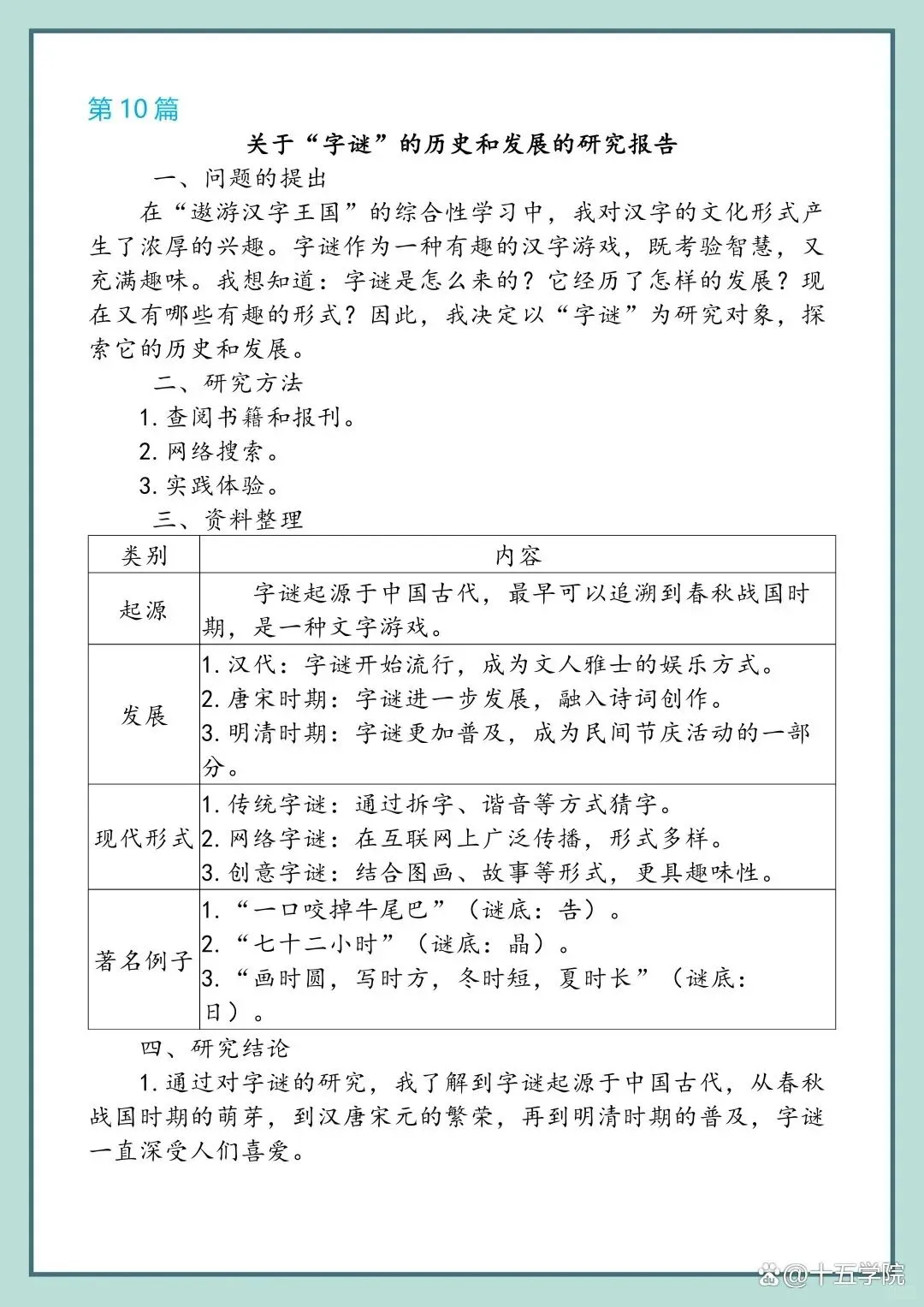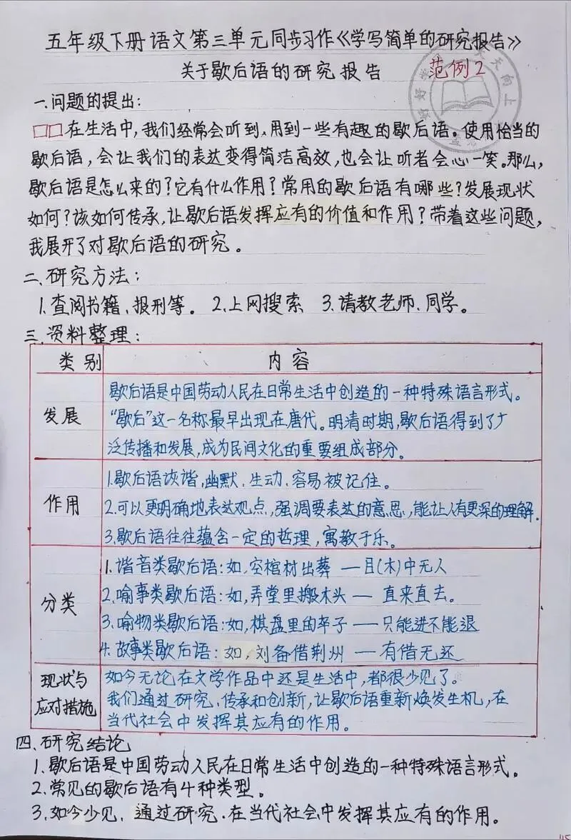 五年级语文下册第三单元《学写简单的研究报告》范文.可收藏备用.