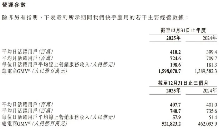 电商业务的变化最具警示意义。第四季度GMV同比增长12.9%至5218亿元,这一增速远低于公司此前的高增长阶段。更值得玩味的是,快手宣布从2026年起不再单独披露GMV数据,这一动作被市场普遍解读为“高增长故事面临终结”的信号。