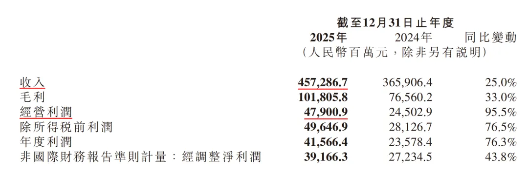 2025年全年,总收入4573亿元,同比增长25%;经调整净利润392亿元,同比增加43.8%,汽车业务,收入首次突破千亿,且实现了9亿元的全年经营收益。