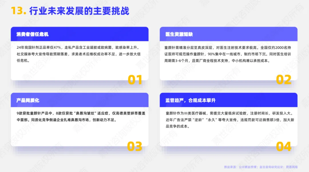 行业存在认知薄弱、产品同质化、医师短缺与合规成本高的挑战;建议推进技术创新与市场培育,依托合规化和性价比拓展下沉市场。