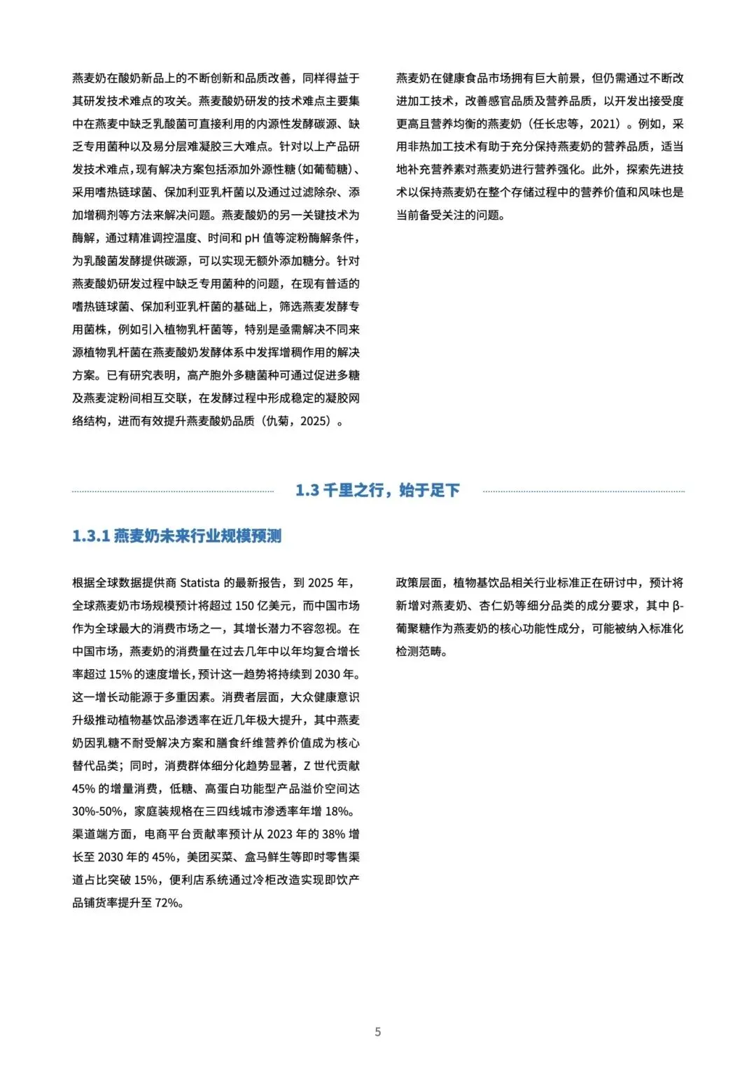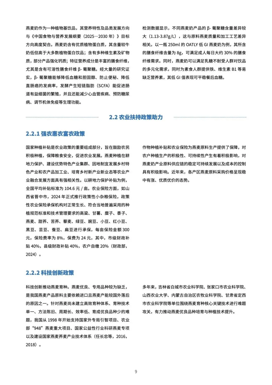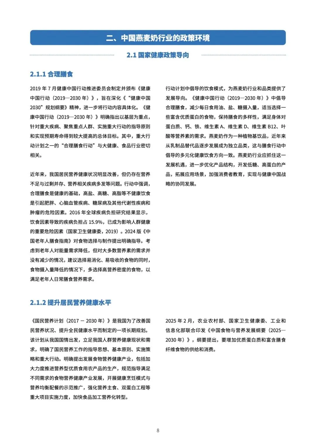 报告梳理中国燕麦奶行业发展历程与现状,分析政策导向、健康环保需求、技术进步对行业的推动作用,聚焦产品创新、市场竞争、消费洞察等核心维度,指出行业从高速增长进入精细化运营阶段,功能化、场景化、本土化成为未来发展主线。