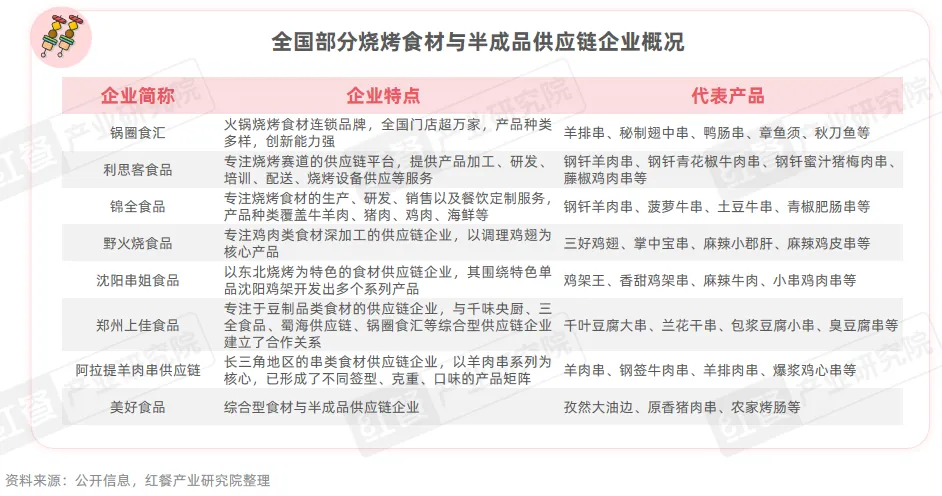 例如,在食材及半成品供应领域,不仅有锅圈食汇、利思客食品、锦全食品、沈阳串姐食品等深耕烧烤食材的供应链企业,更有美好食品、安井食品等综合型食材企业也在加码烧烤类食材。