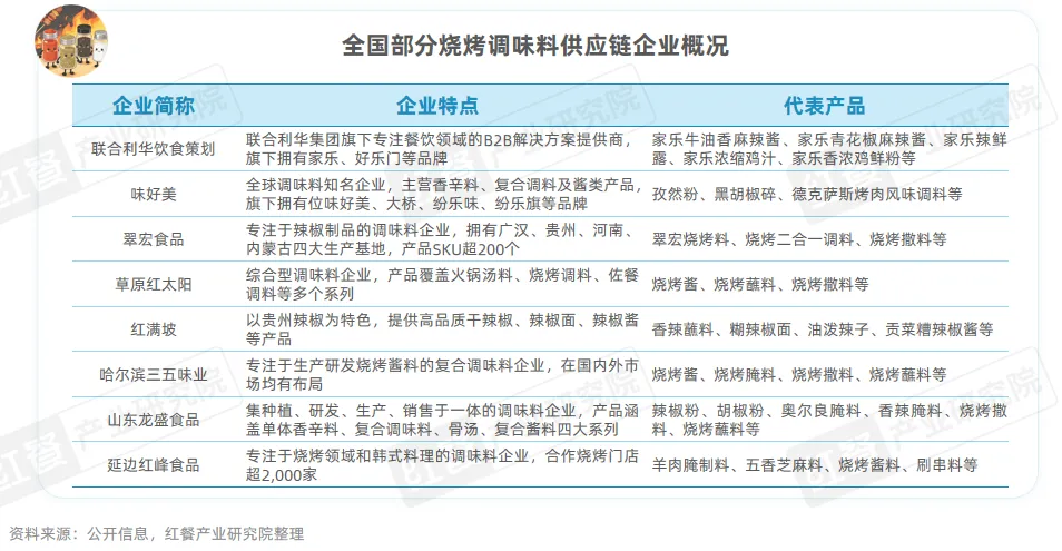 为了解决烧烤品牌在产品口味创新与升级方面的难题,一些上游企业主动从幕后走向台前,依托深厚的调味积淀和丰富的市场经验,为下游品牌提供成熟的口味解决方案。