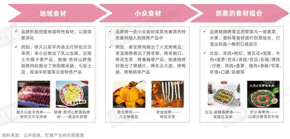 1.烧烤食材日益多元,品牌围绕“鲜”“新”“奇”等方向创新