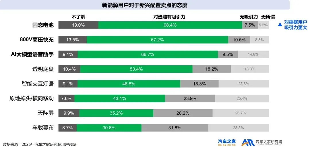 对于摇摆用户而言,固态电池和高压快充是极具吸引力的卖点。一旦这些技术普及,他们将加速向新能源阵营转移。