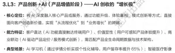 流程提效后,企业要从“对内降本”转向“对外创收”,L3的核心是把AI深度融入核心产品,直接面向客户创造新价值,是企业成为政策“优等生”、抢占市场话语权的关键。