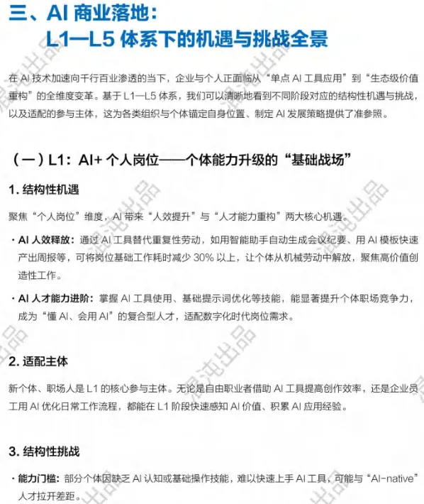 一、AI商业落地总纲:L1-L5五级体系,从单点到生态的价值跃迁